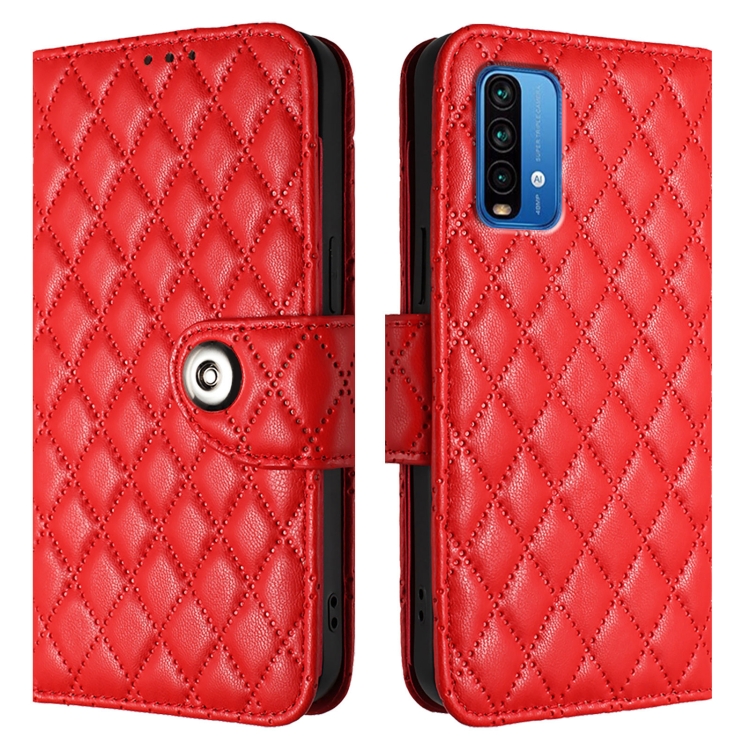 Para Redmi 9 Power / 9T Global Rhombic Texture Funda de Cuero con Tapa para Teléfono con Cordón (Rojo)