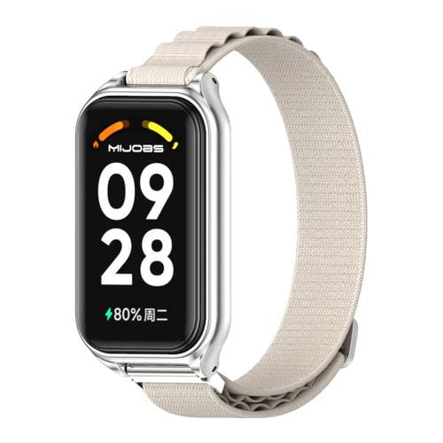 Correa de Reloj para Redmi Band 2 Mijobs Transpirable de Nailon con Carcasa Metálica (Gris Plateado)