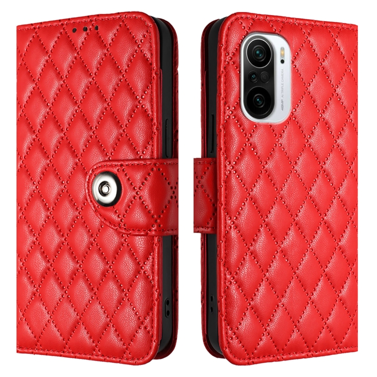 Para Redmi K40 / K40 Pro Funda de Cuero con Tapa con Textura Rómbica y Cordón (Rojo)