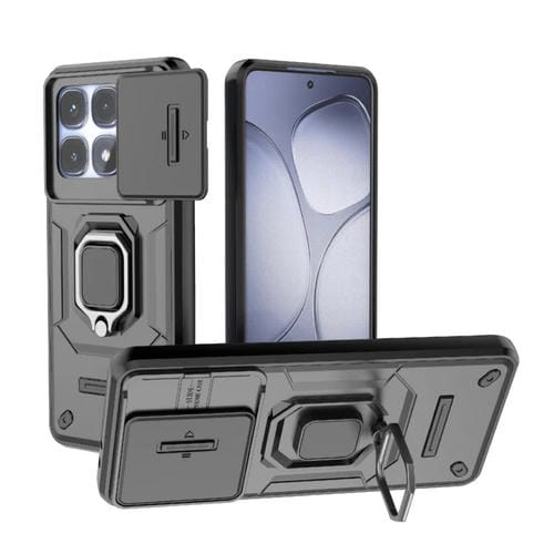 Para Redmi K70 Ultra Global Sliding Camshield TPU + PC Funda para Teléfono a Prueba de Golpes con Soporte (Negro)