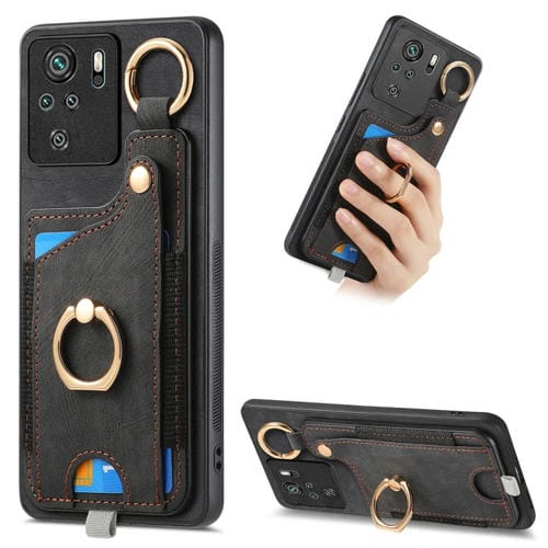 Para Redmi Note 10 4G Funda para Teléfono con Bolsa para Tarjeta con Anillo y Sensación de Piel Retro con Lazo para Colgar (Negro)