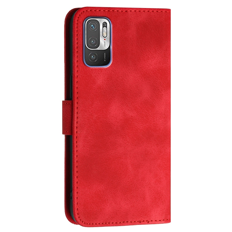 Para Redmi Note 10 Je Versión Yx0080 Funda de Cuero con Tapa con Patrón En Relieve de Mariposa y Cuadrícula con Cordón (Rojo)