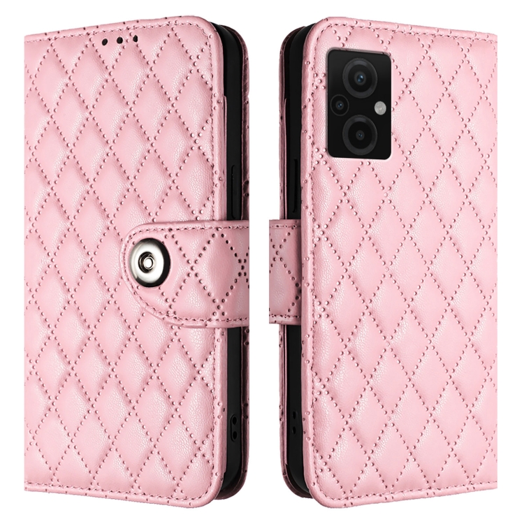 Para Redmi Note 11R / Note 11E Funda para Teléfono de Cuero con Tapa con Textura Rómbica y Cordón (Rosa)
