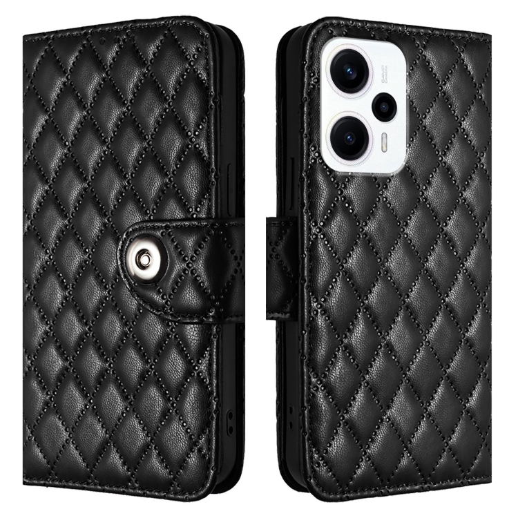 Para Redmi Note 11T Pro + / 12T Pro Funda para Teléfono de Cuero con Tapa con Textura Rómbica y Cordón (Negro)