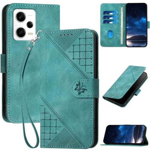 Para Redmi Note 12 Pro+ Yx0080 Funda de Cuero con Tapa y Patrón En Relieve de Mariposa y Cuadrícula con Cordón (Azul Claro)