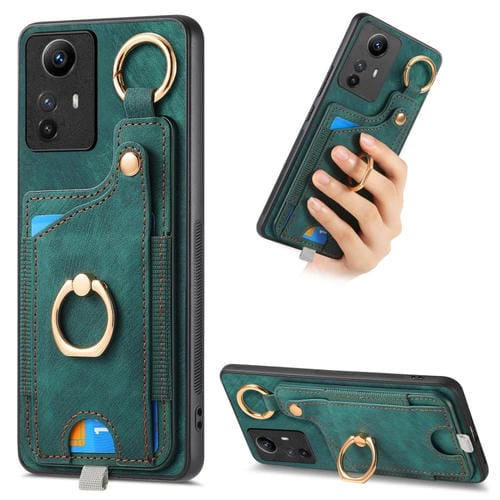 Para Redmi Note 12S Funda para Teléfono con Bolsa para Tarjeta con Anillo y Sensación de Piel Retro con Lazo para Colgar (Verde)