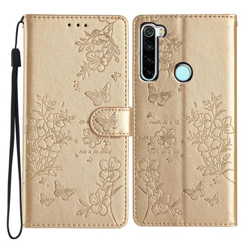 Para Redmi Note 8T Funda de Cuero para Teléfono con Mariposas y Flores (Dorado)