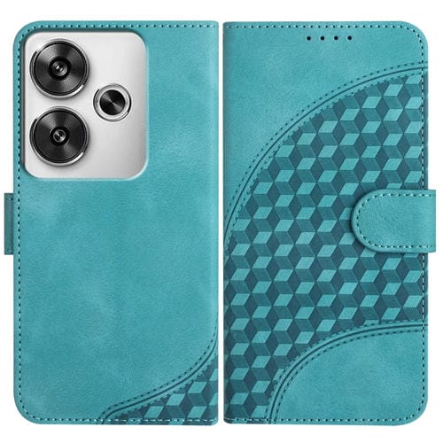Para Redmi Turbo 3 / Xiaomi Poco F6 Yx0060 Funda de Cuero para Teléfono con Relieve y Cabeza de Elefante con Cordón (Azul Claro)