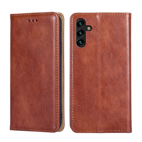 Estuche para Teléfono Samsung Galaxy A04S Cuero Magnético Color Sólido con Aceite Brillante (Marrón)