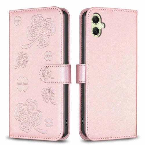 Funda de Cuero Samsung Galaxy A05 con Relieve de Cuatro Hojas (Rosa)
