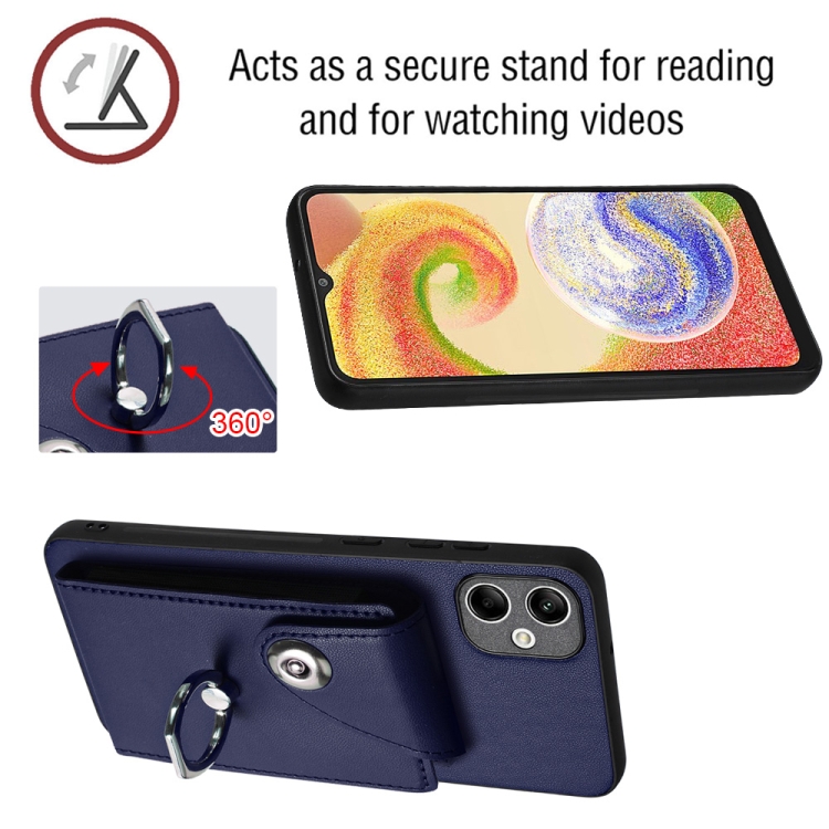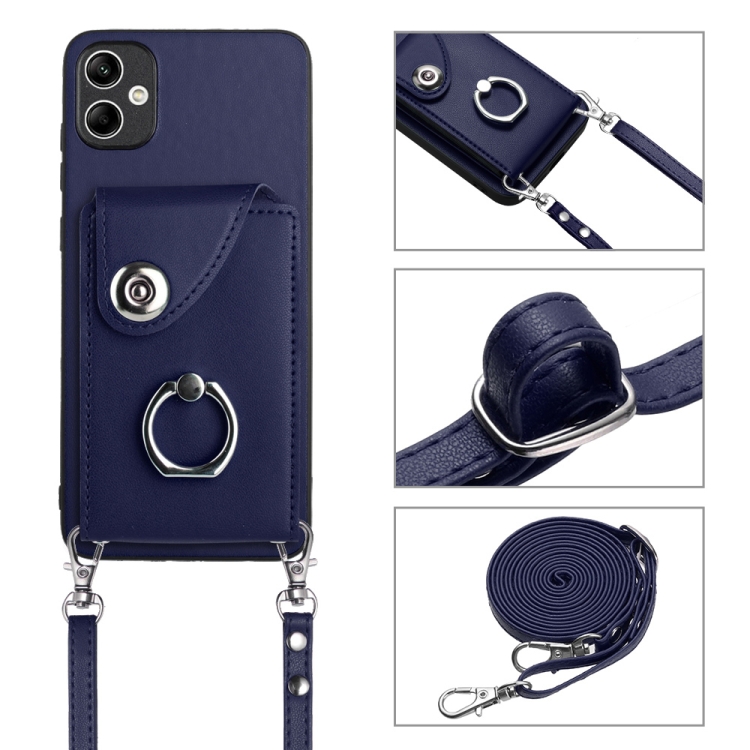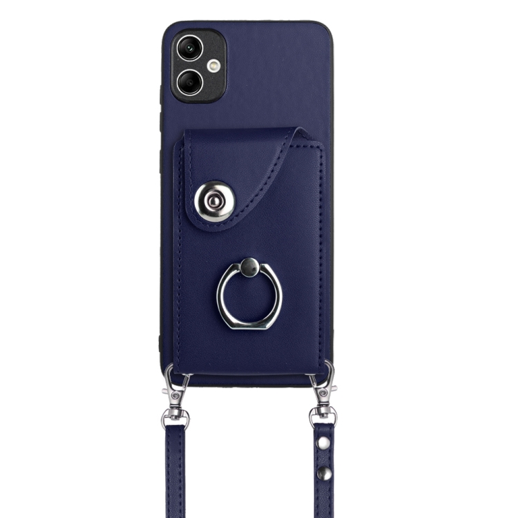 Funda para Teléfono Samsung Galaxy A05 con Soporte para Anillo y Bolsa para Tarjeta con Cordón Largo (Azul)