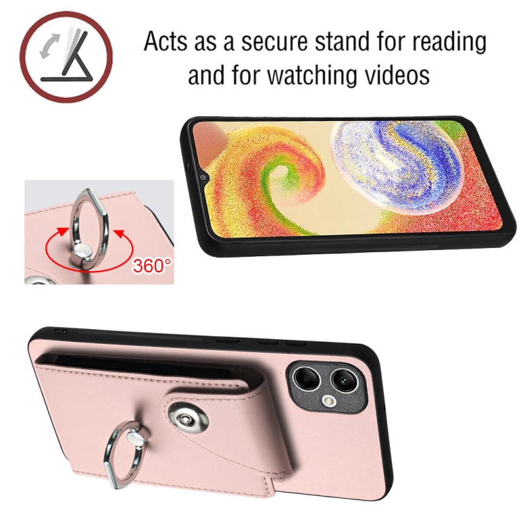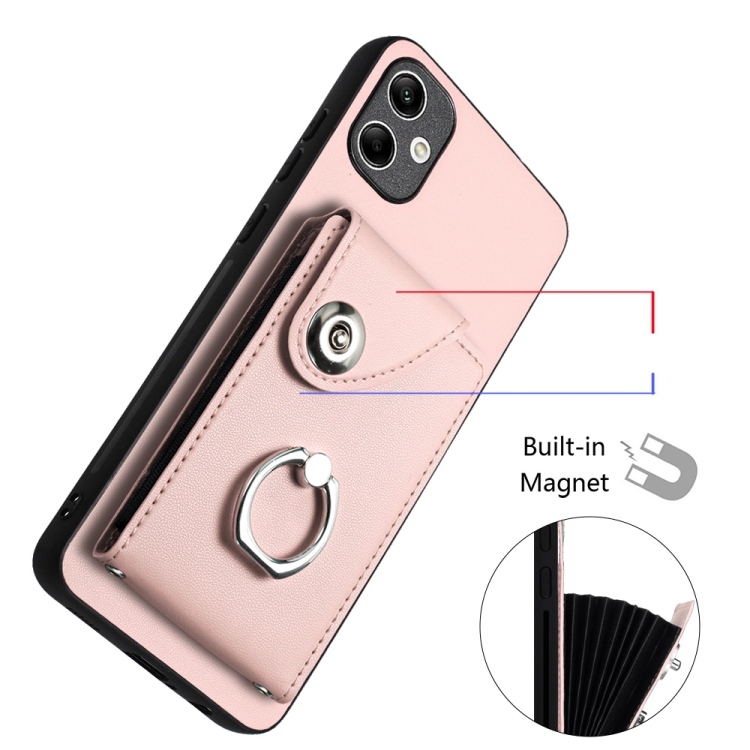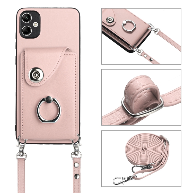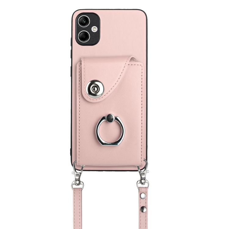 Funda para Teléfono Samsung Galaxy A05 con Soporte para Anillo y Bolsa para Tarjeta con Cordón Largo (Rosa)