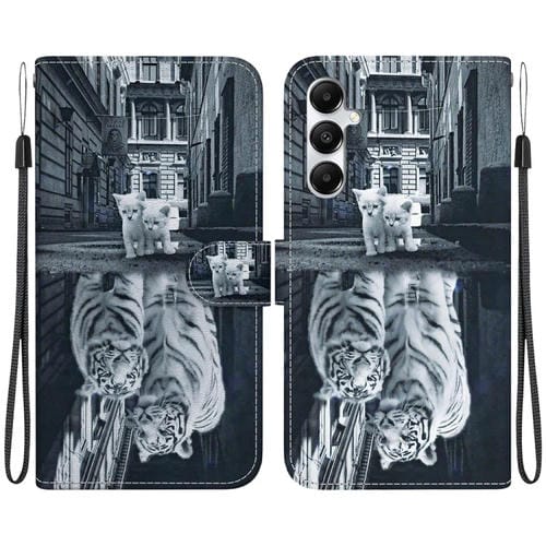 Funda de Cuero Samsung Galaxy A05S Dibujo Coloreado Textura de Cristal (Reflejo de Tigre Gato)