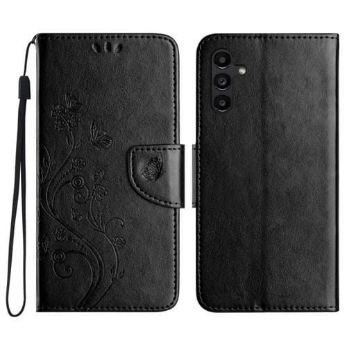 Funda de Teléfono Samsung Galaxy A05S Cuero Tapa Patrón Flores Mariposa (Negro)