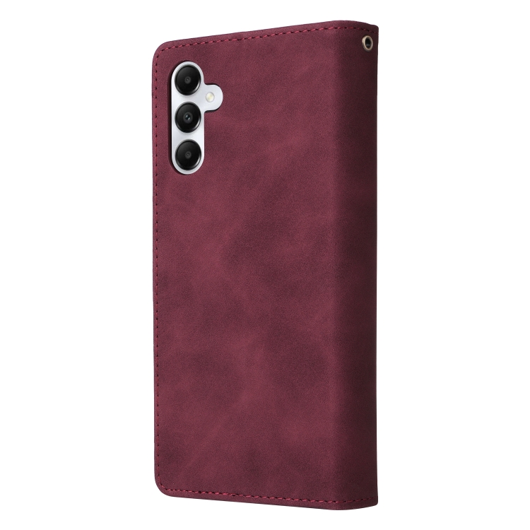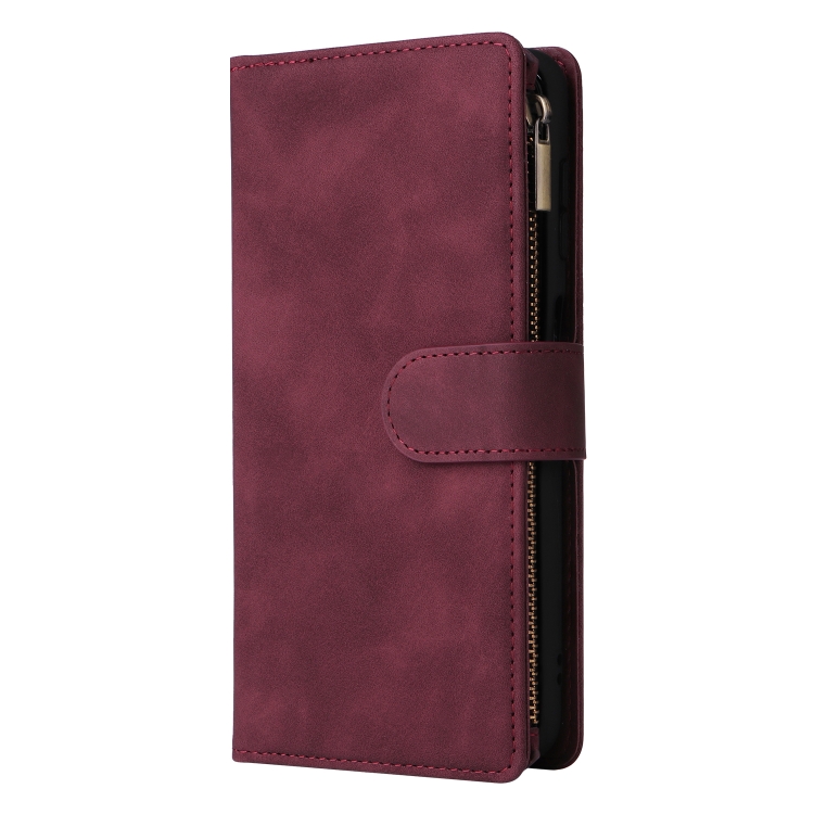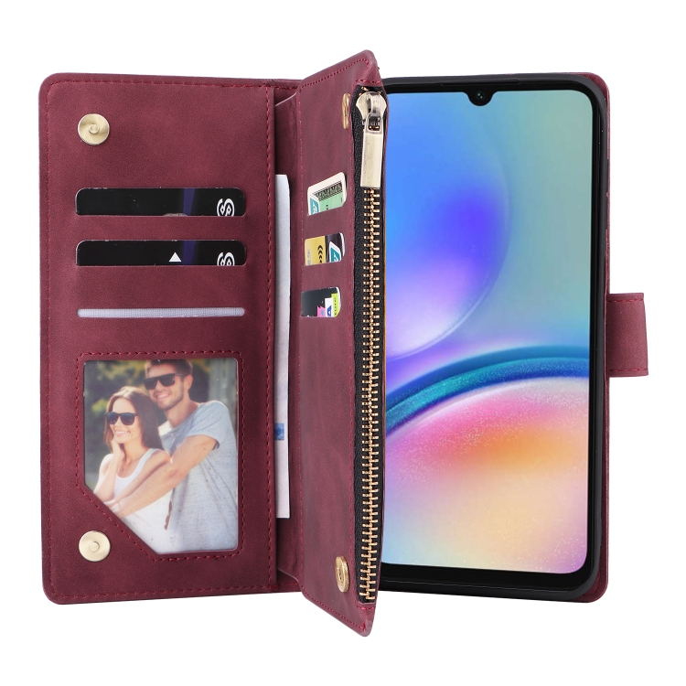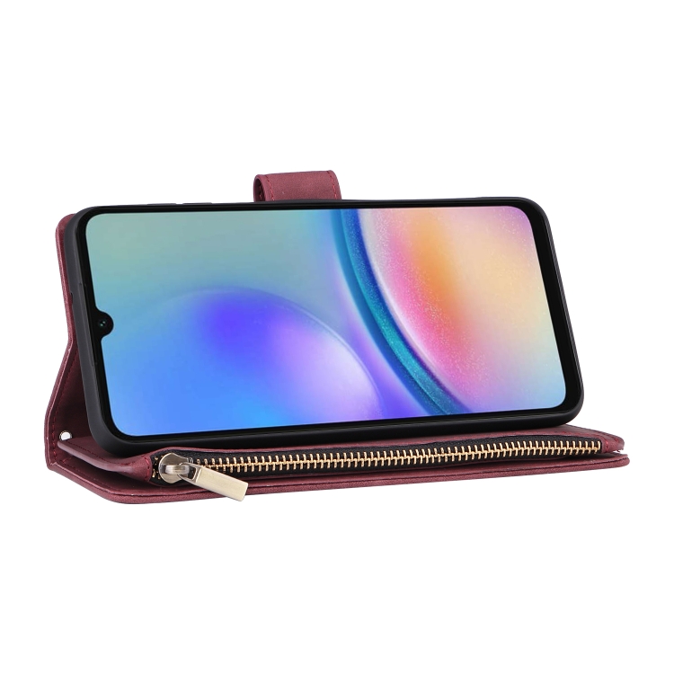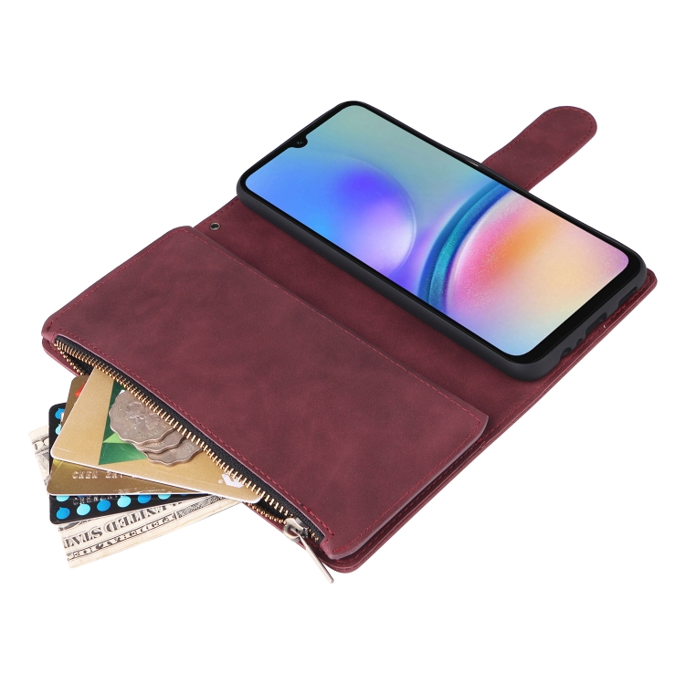 Funda para Teléfono Samsung Galaxy A05S Cuero con Billetera y Cremallera Esmerilada Multifuncional (Rojo Vino)