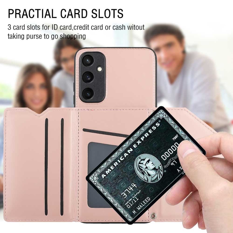 Funda para Teléfono Samsung Galaxy A05S Skin Feel PU + TPU con Ranuras para Tarjetas PC (Oro Rosa)