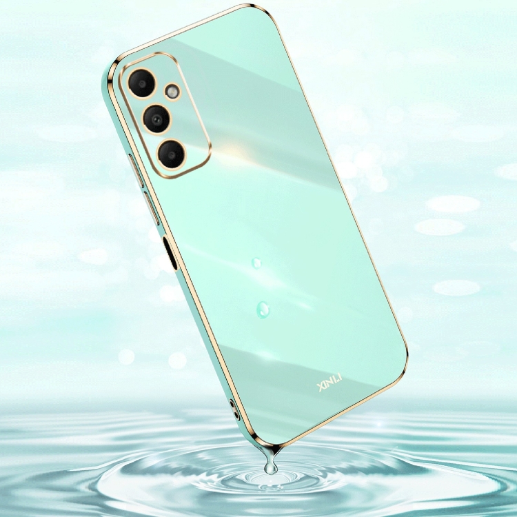 Estuche para Teléfono Xinli Straight Edge 6D para Samsung Galaxy A05S de TPU Electrochapado con Soporte para Anillo (Blanco)