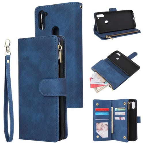 Estuche para Teléfono Samsung Galaxy A11 Us Cuero con Billetera y Cremallera Esmerilada Multifuncional (Azul)