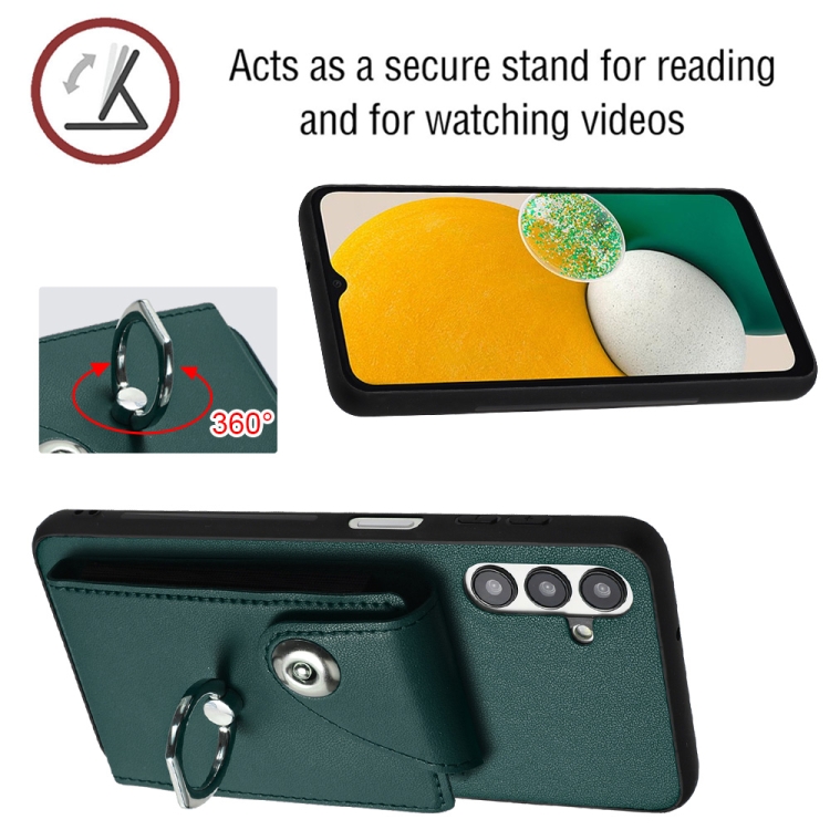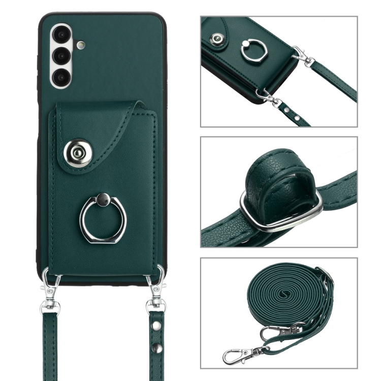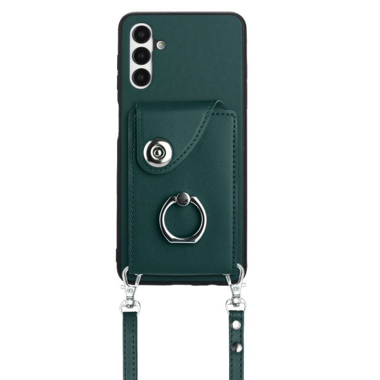 Funda para teléfono Samsung Galaxy A13 5G A04S con Soporte para Anillo y Bolsa para Tarjeta con Cordón Largo (Verde)