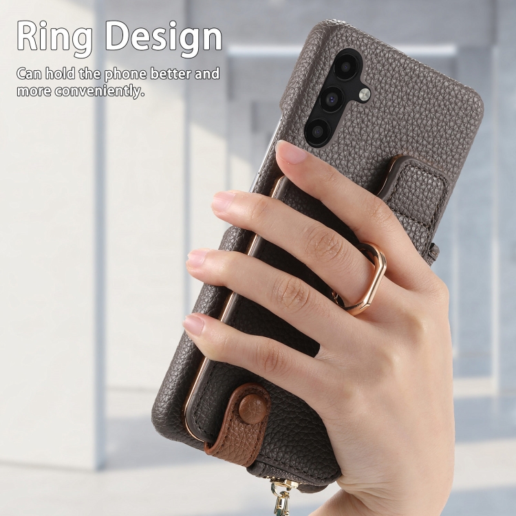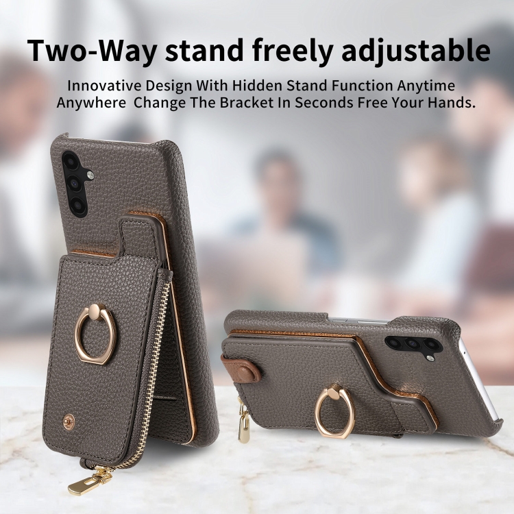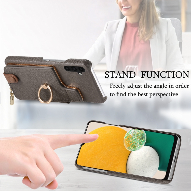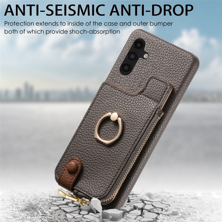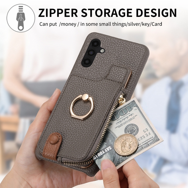 Funda para Samsung Galaxy A13 5G Litchi Leather Oil Edge Ring Zipper Wallet Back (Gris)