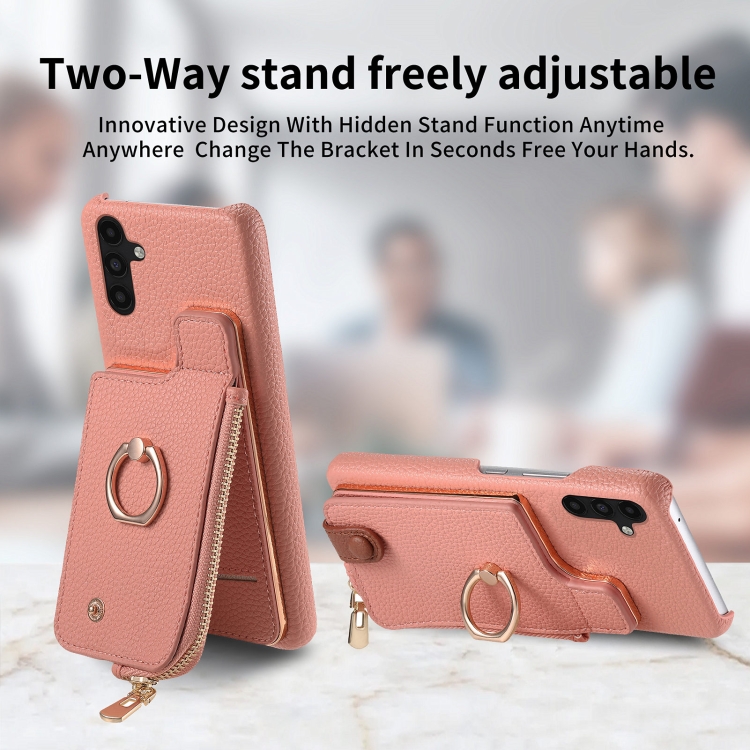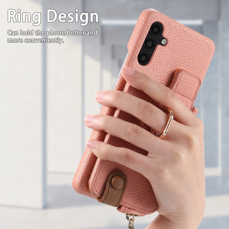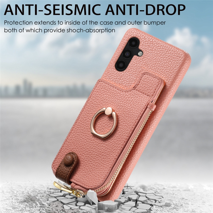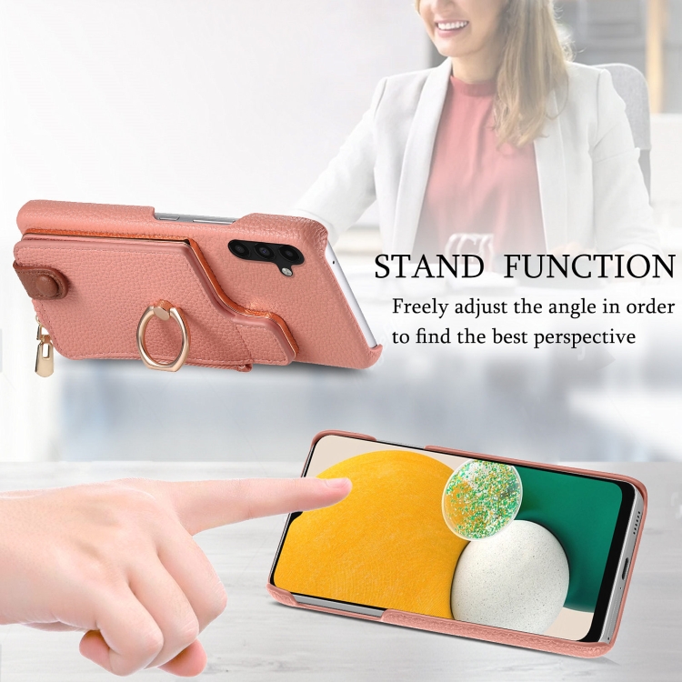 Funda para Samsung Galaxy A13 5G Litchi Leather Oil Edge Ring Zipper Wallet Back (Rosa)