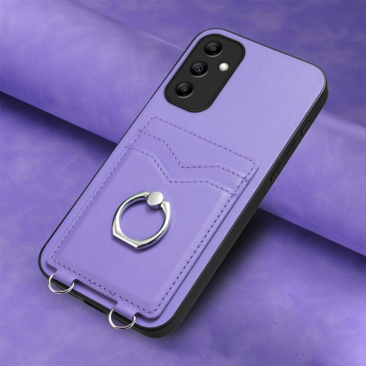 Estuche para Teléfono Samsung Galaxy A14 5G R20 con Soporte para Tarjeta y Anillo (Púrpura)