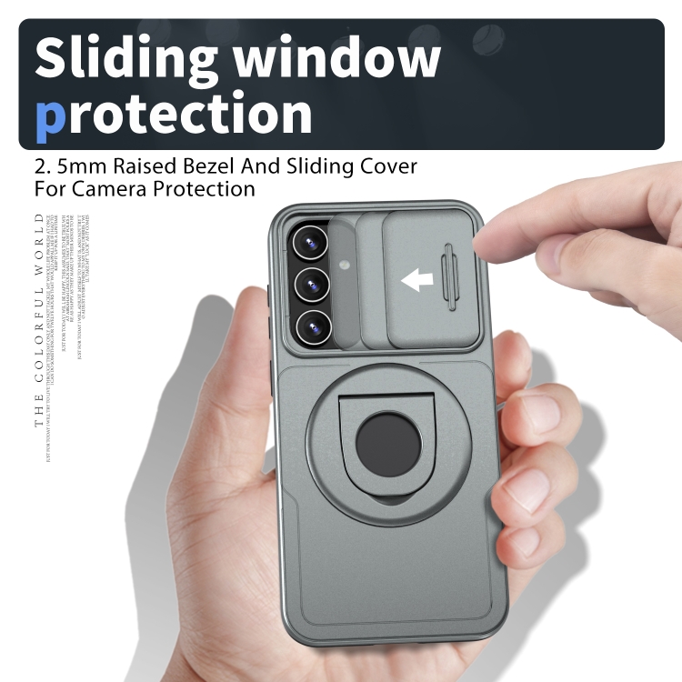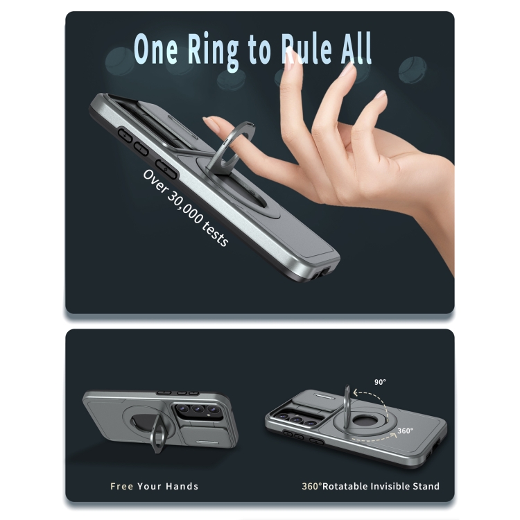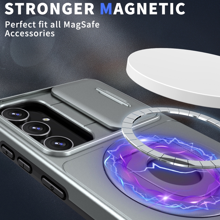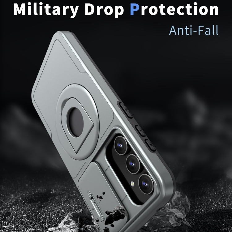 Funda Armor para Samsung Galaxy A14 con Camshield Magsafe Ring Holder (Gris Titanio)