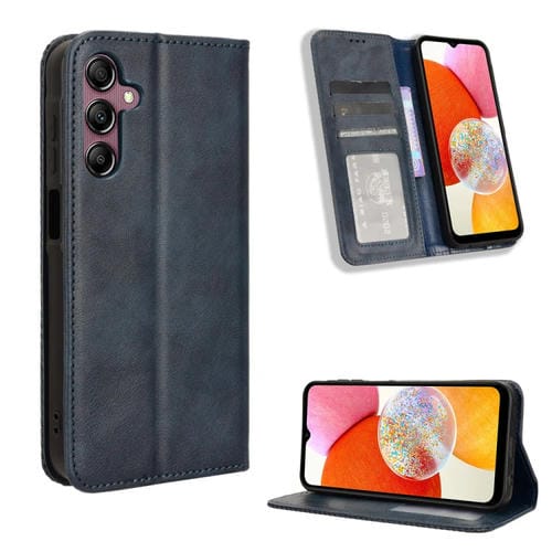Funda para Teléfono Samsung Galaxy A15 Cuero Textura Retro Hebilla Magnética (Azul)