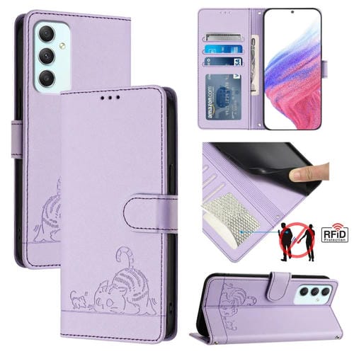 Estuche para Teléfono Samsung Galaxy A35 5G Cuero Rfid Patrón En Relieve con Cordón (Púrpura)