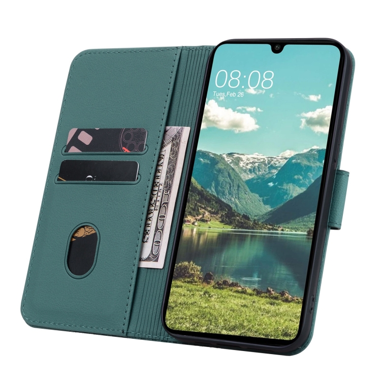 Funda de Cuero Samsung Galaxy A35 5G con Hebilla de Diamante y Cordón (Verde)