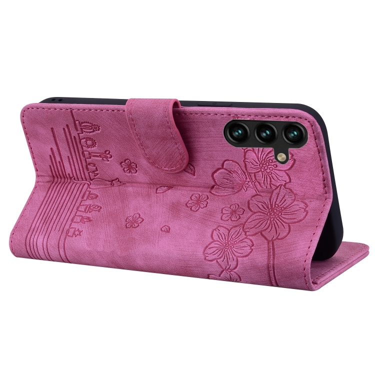 Funda para Teléfono Samsung Galaxy A35 5G Cuero Relieve Gato Sakura Dibujos Animados (Rojo Rosa)