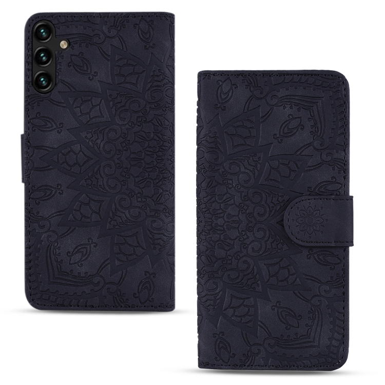 Funda para Teléfono Samsung Galaxy A35 5G Piel de Becerro Doble Pliegue Relieve Mandala (Negro)