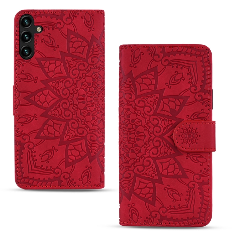 Funda para Teléfono Samsung Galaxy A35 5G Piel de Becerro Doble Pliegue Relieve Mandala (Rojo)