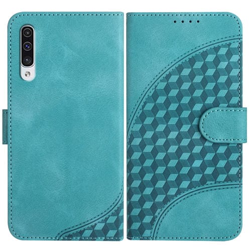 Funda para Samsung Galaxy A50 A50S Yx0060 Cuero Relieve Cabeza de Elefante con Cordón (Azul Claro)