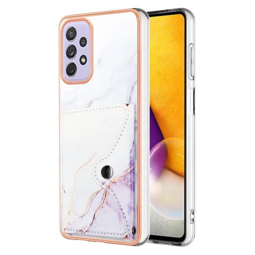 Estuche para Teléfono Samsung Galaxy A52 5G / 4G con Ranura para Tarjeta Imd y Patrón de Mármol (Blanco y Morado)