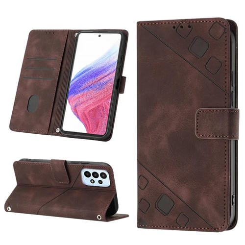 Estuche para Teléfono Samsung Galaxy A53 5G Cuero En Relieve con Tacto de Piel (Marrón)