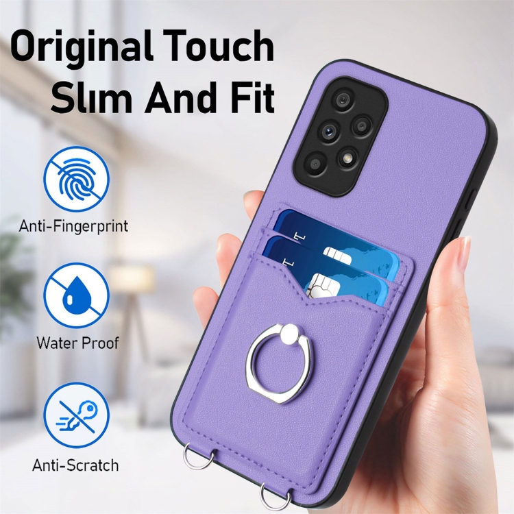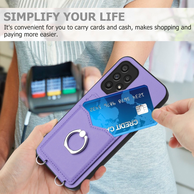 Estuche para Teléfono Samsung Galaxy A53 5G R20 con Soporte para Tarjeta con Anillo (Púrpura)