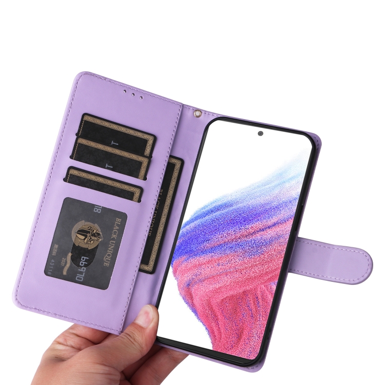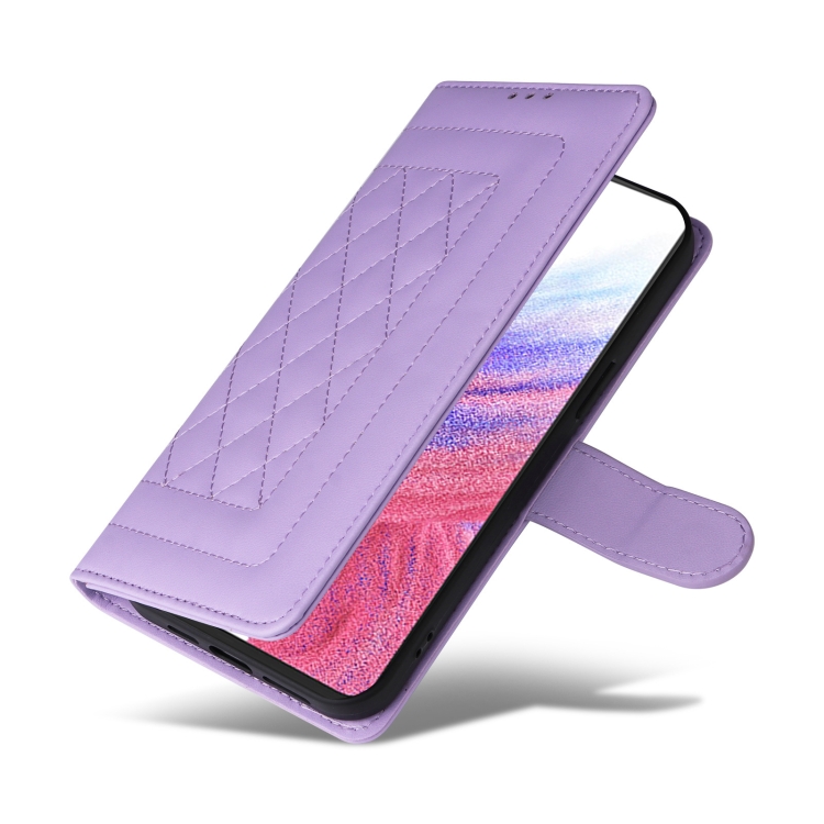 Estuche para Teléfono Samsung Galaxy A53 con Tapa de Cuero Diamond Lattice (Púrpura Claro)