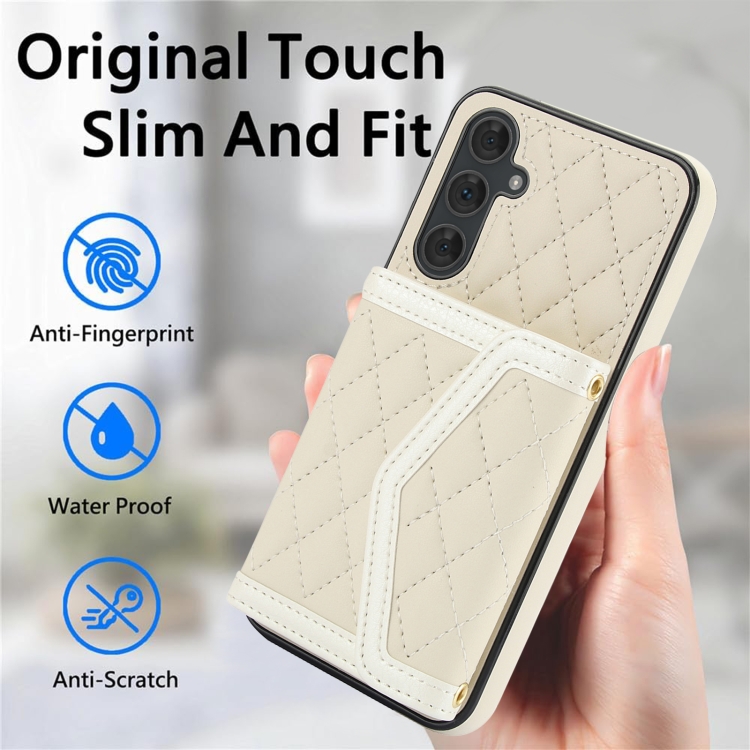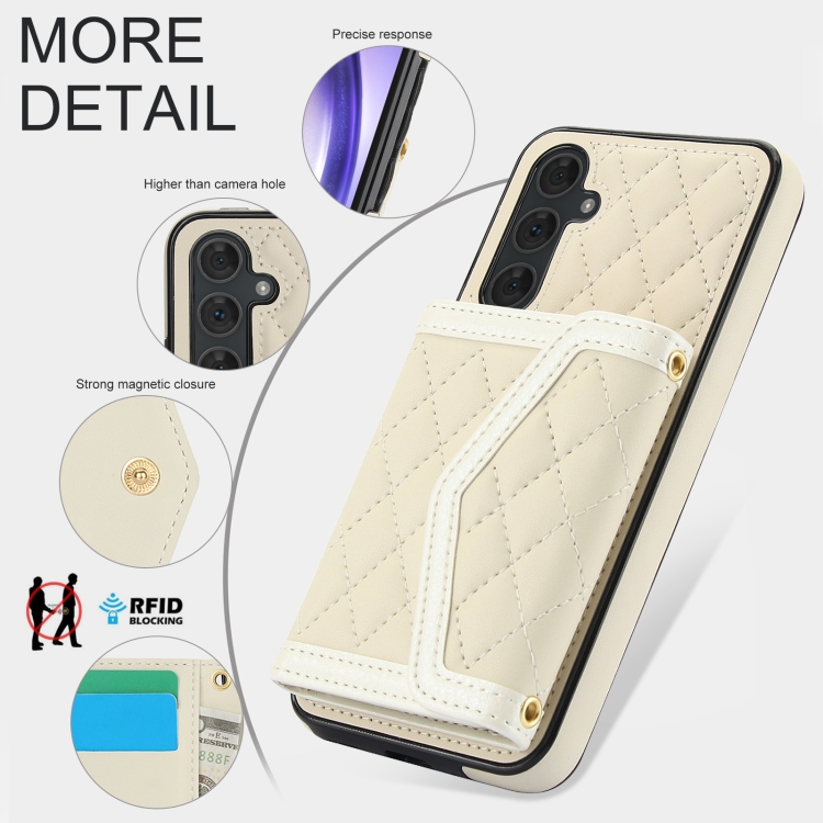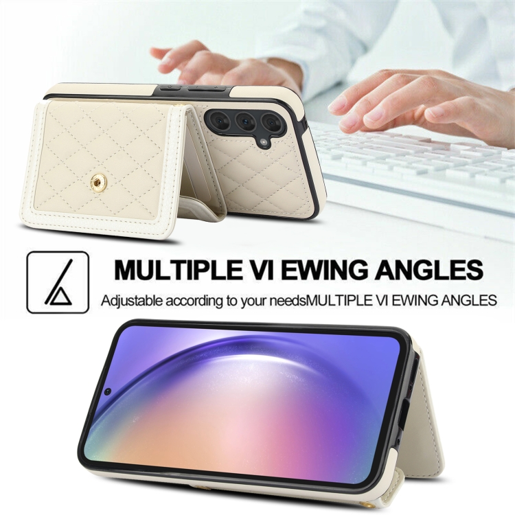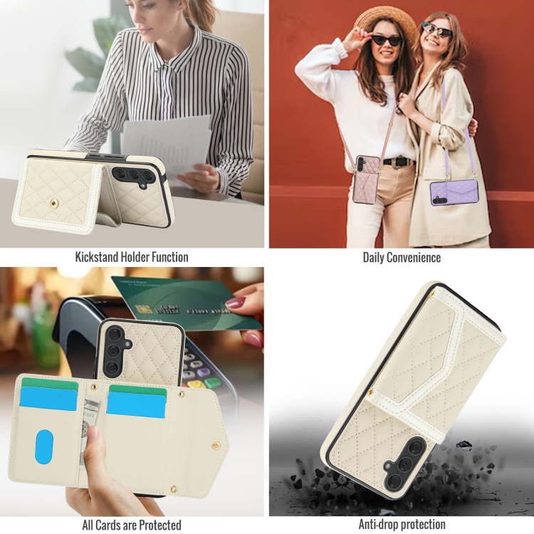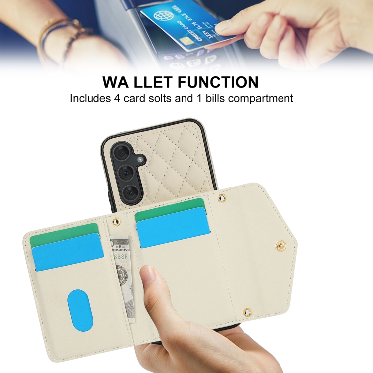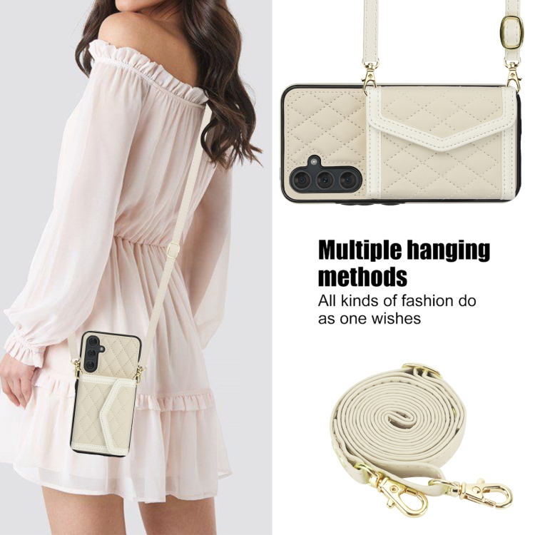 Estuche para teléfono Samsung Galaxy A54 4G 5G con bolsa para tarjetas textura rómbica y cordón largo (Beige)
