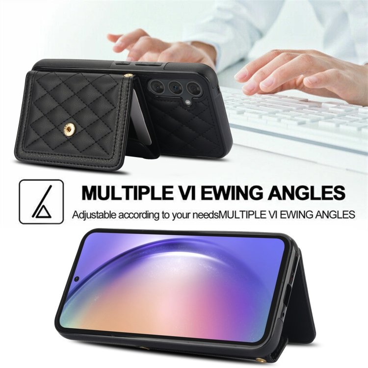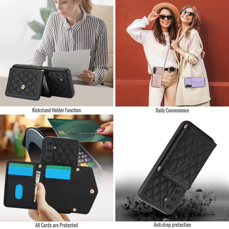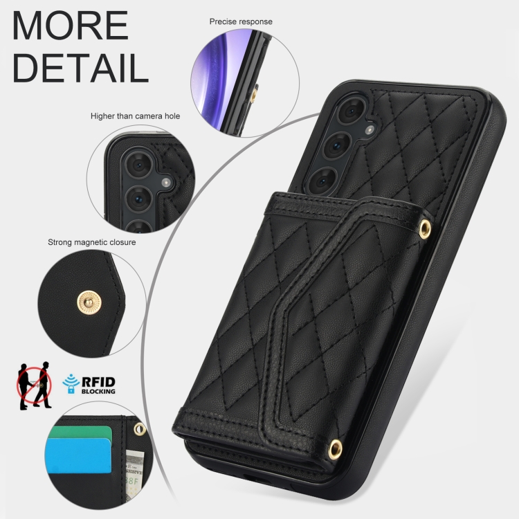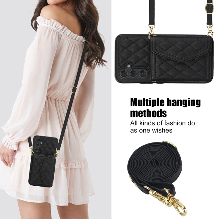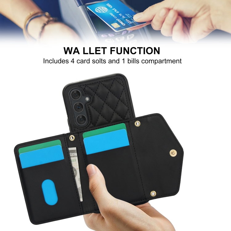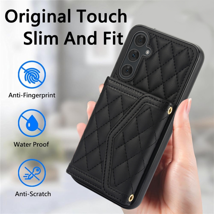 Estuche para Teléfono Samsung Galaxy A54 4G 5G con Bolsa para Tarjetas Textura Rómbica Empalme Cordón Largo (Negro)