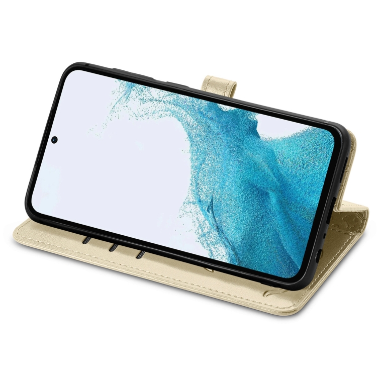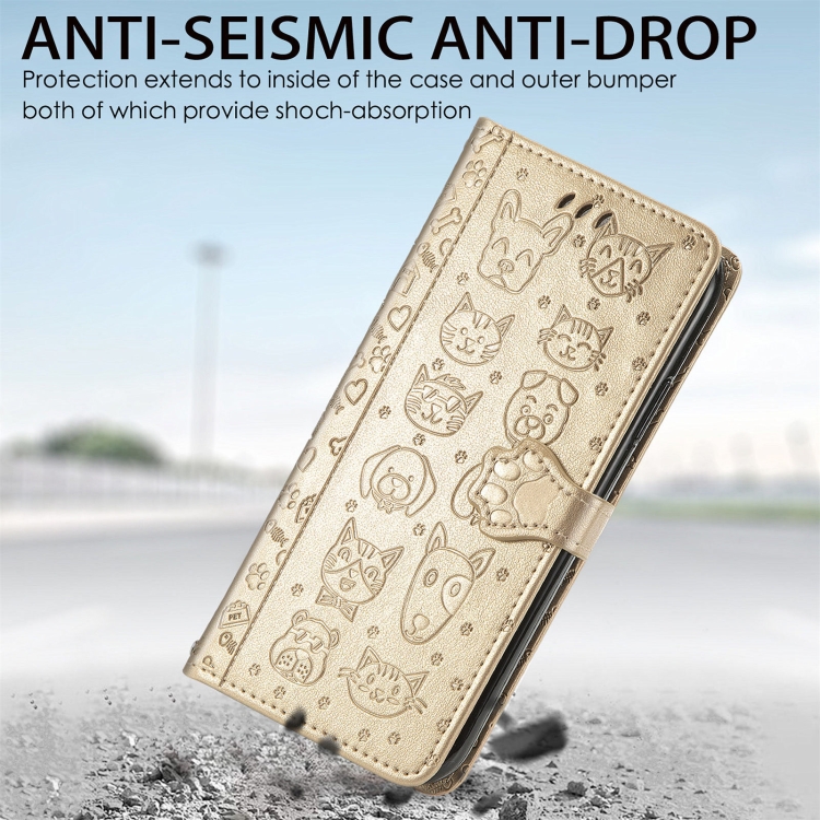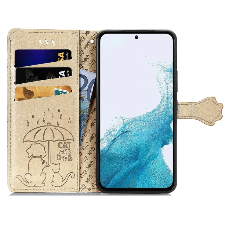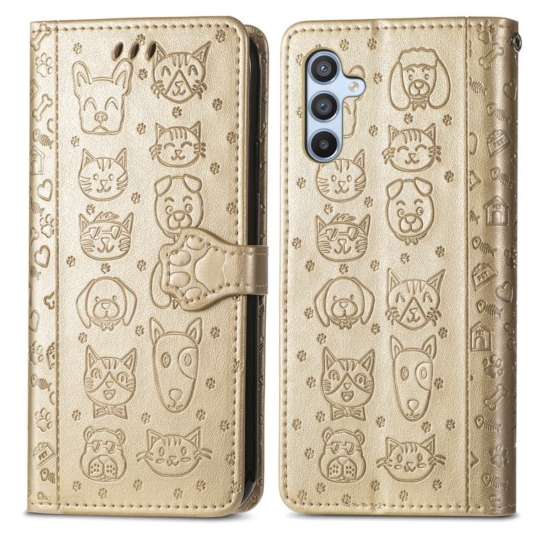 Para Samsung Galaxy A54 5G Cat and Dog Estuche de cuero en relieve para teléfono (Oro)
