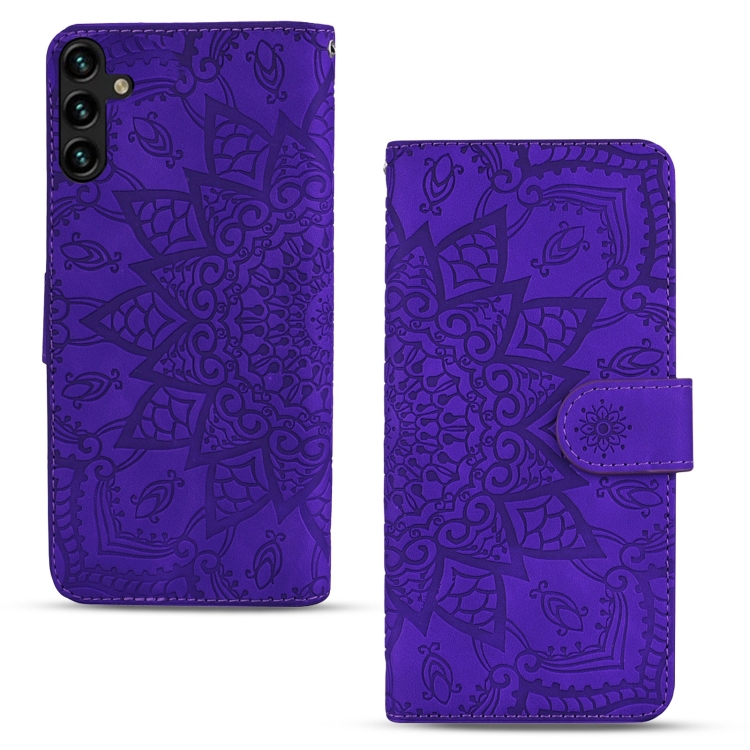 Funda para Teléfono Samsung Galaxy A55 5G Piel de Becerro Doble Pliegue Relieve Mandala (Púrpura)