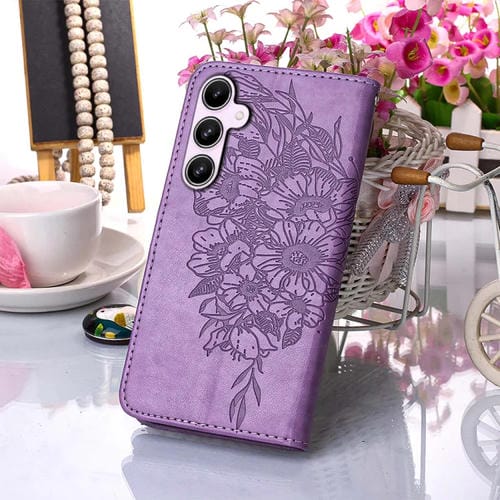 Funda de Cuero Samsung Galaxy A55 con Mariposa en Relieve (Púrpura)