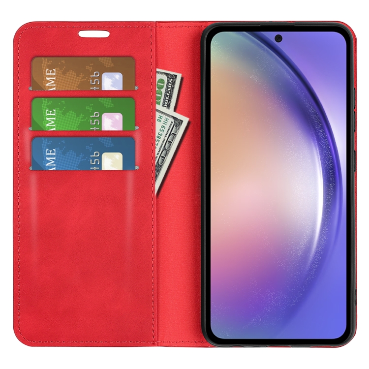 Funda para Samsung Galaxy A55 Cuero Teléfono Succión Magnética Piel Retro (Rojo)