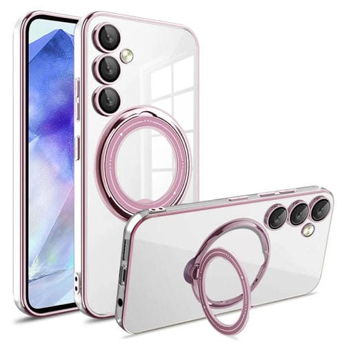 Estuche para teléfono Samsung Galaxy A55 Galvanoplastia Magsafe Soporte de Rotación 360° a Prueba de Golpes (Rosa)