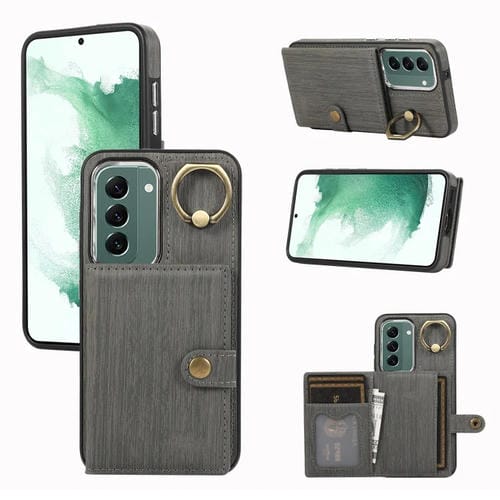 Funda para Teléfono Samsung Galaxy S22+ 5G con Soporte para Anillo y Billetera (Gris)