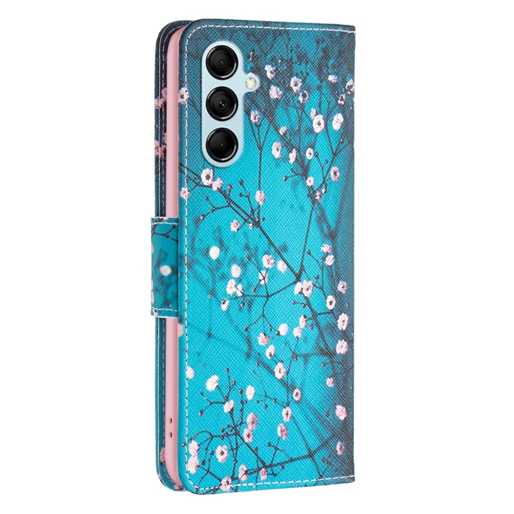 Para Samsung Galaxy M14 5G Estuche de teléfono de cuero con patrón de dibujo coloreado (flor del ciruelo)