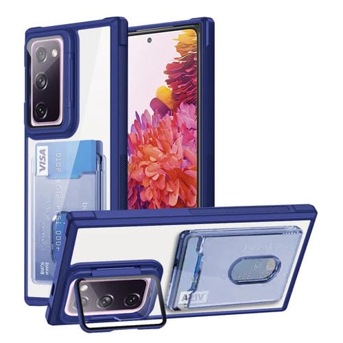 Estuche para Teléfono Samsung Galaxy S20 FE TPU Híbrido Acrílico con Soporte y Bolsa de Tarjeta (Azul)