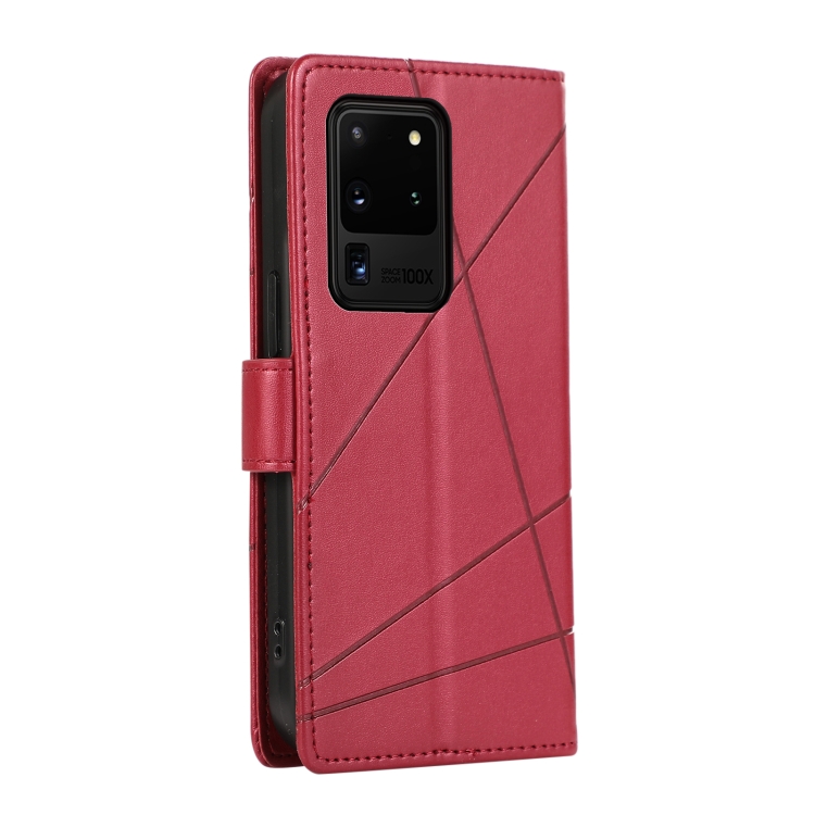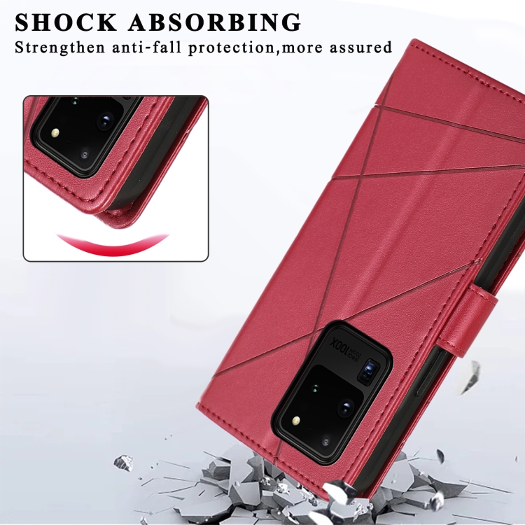 Funda para Teléfono Samsung Galaxy S20 Ultra Textura Cuero Genuino Línea En Relieve (Rojo)