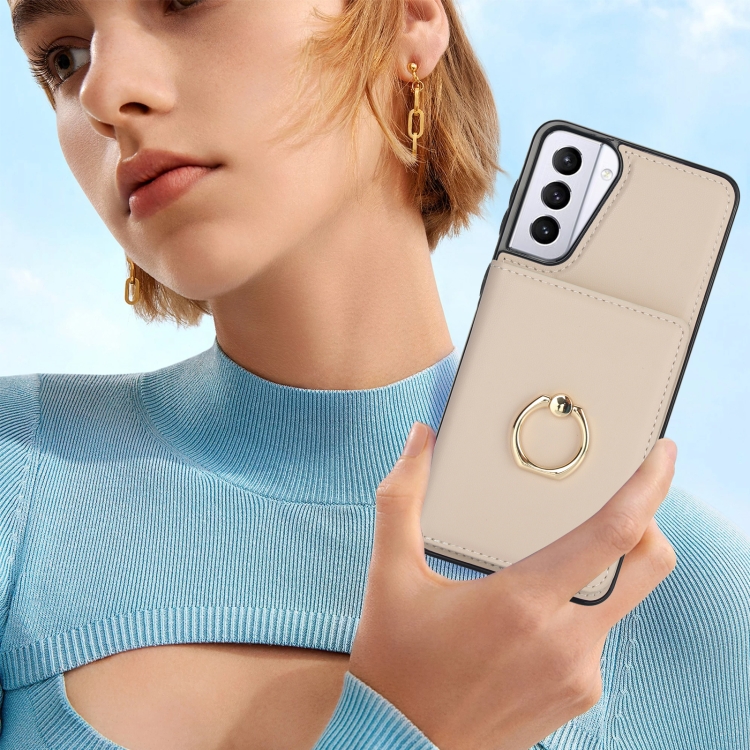 Estuche para Teléfono Samsung Galaxy S21 5G Rfid Tarjeta Antirrobo con Soporte para Anillo (Blanco)